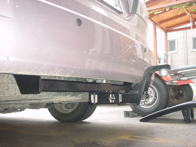 現車はエスティマハイブリッド。バンパーがアエラスよりも深くないので、ヒッチメンバー本体があまり隠れません。