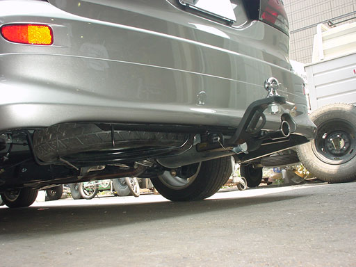 エスティマアエラスのヒッチメンバーです。完全ボルトオン!と言いたいところですが、車両によっては、バール、もしくはヒッチメンバー側の穴を少し広げるなどしなければいけないこともあるみたいです。他、マフラーを落とす必要もあります。